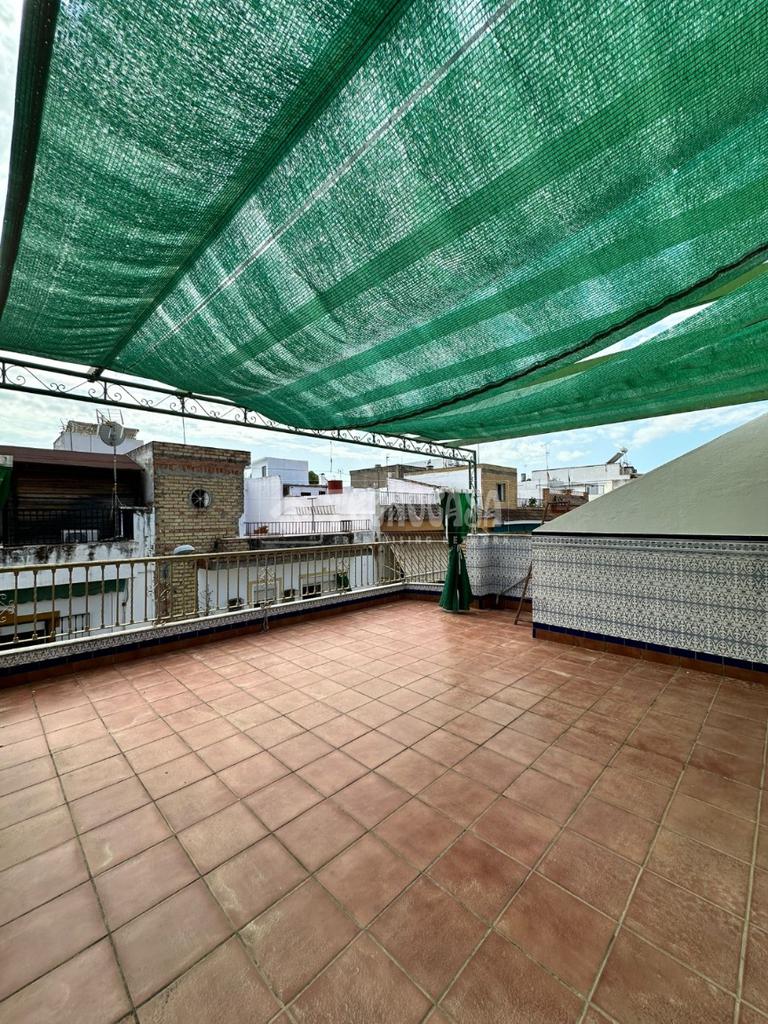 Casa adosada en Mairena del aljarafe de 233m2. 4 dormitorios y armario empotrado, baño, cocina amueblada, patio, amplio salon comedor con terraza, y en segunda planta apartamento de 50 m2 completo con su baño, cocina, salon con chimenea y terraza. Garaje de 90m2 con aseo y habilitado para montar una cocina, ideal para convertir en vivienda. A tan solo 10 mnt andando del metro.